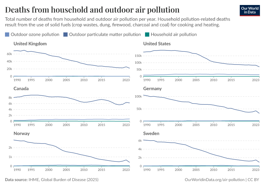 Hannah Ritchie and Pablo Rosado (2025) - “Air pollution kills millions every year — where does it come from?” Published online at OurWorldinData.org. Retrieved from: 'https://refactor-hide-legend.owid.pages.dev/air-pollution-sources' [Online Resource]BibTeX citation