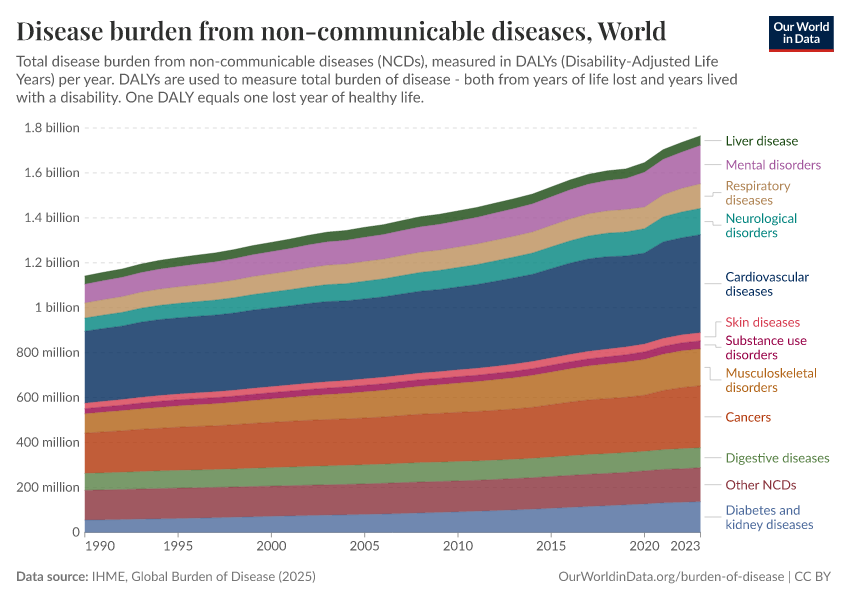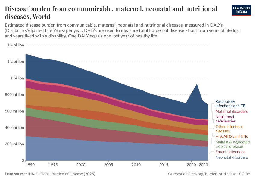 Max Roser, Hannah Ritchie, and Fiona Spooner (2021) - “Burden of Disease” Published online at OurWorldinData.org. Retrieved from: 'https://refactor-hide-legend.owid.pages.dev/burden-of-disease' [Online Resource]BibTeX citation