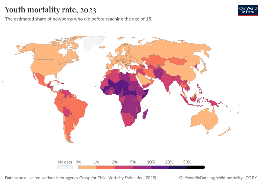 Saloni Dattani, Fiona Spooner, Hannah Ritchie, and Max Roser (2023) - “Child and Infant Mortality” Published online at OurWorldinData.org. Retrieved from: 'https://refactor-hide-legend.owid.pages.dev/child-mortality' [Online Resource]BibTeX citation