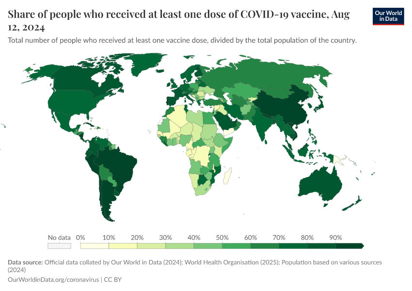 Edouard Mathieu, Hannah Ritchie, Lucas Rodés-Guirao, Cameron Appel, Daniel Gavrilov, Charlie Giattino, Joe Hasell, Bobbie Macdonald, Saloni Dattani, Diana Beltekian, Esteban Ortiz-Ospina, and Max Roser (2020) - “Coronavirus (COVID-19) Vaccinations” Published online at OurWorldinData.org. Retrieved from: 'https://refactor-hide-legend.owid.pages.dev/covid-vaccinations' [Online Resource]BibTeX citation