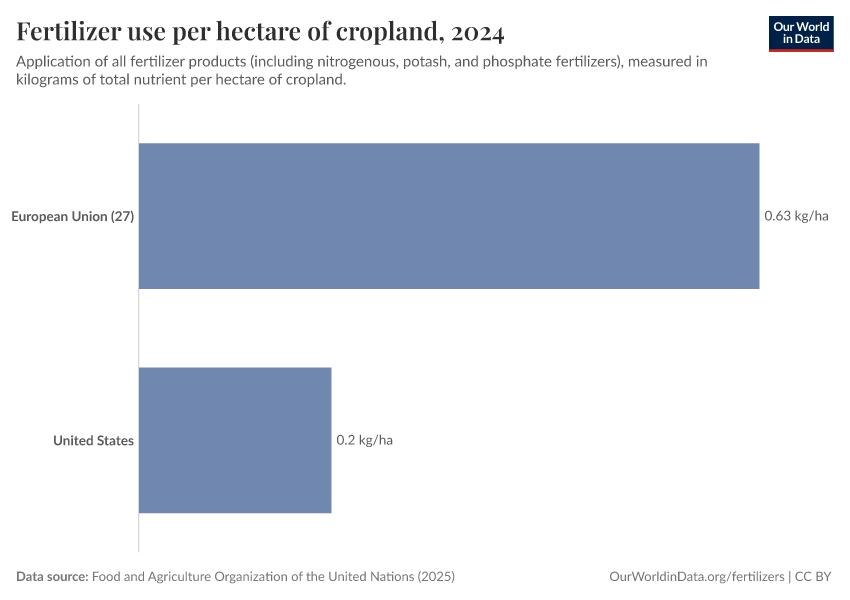 It’s worth noting that richer countries also tend to use more inputs such as fertilizers and pesticides, which are some of the most regulated parts of agriculture. It makes sense that they would have more targets and legislation to reduce it.