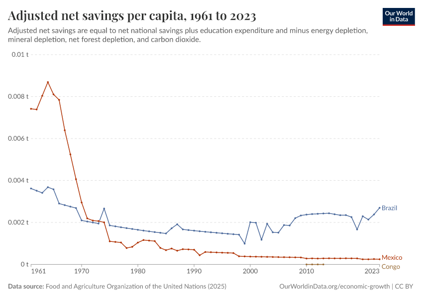 United Nations Population Division, national statistical offices, and Eurostat, via World Bank (2026) – processed by Our World in Data. “Adjusted net savings per capita” [dataset]. United Nations Population Division, national statistical offices, and Eurostat, via World Bank, “World Development Indicators 125” [original data]. Retrieved March 4, 2026 from https://refactor-hide-legend.owid.pages.dev/grapher/adjusted-net-savings-per-person