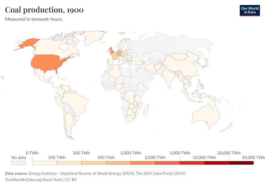 “Data Page: Coal production”, part of the following publication: Hannah Ritchie, Pablo Rosado, and Max Roser (2023) - “Energy”. Data adapted from Energy Institute, The Shift Data Portal. Retrieved from https://refactor-hide-legend.owid.pages.dev/grapher/coal-production-by-country [online resource]