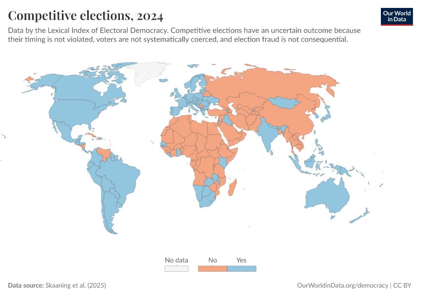 Skaaning et al. (2025) – processed by Our World in Data. “Competitive elections” [dataset]. Skaaning et al., “Lexical Index of Electoral Democracy (LIED) v6.8” [original data]. Retrieved March 4, 2026 from https://refactor-hide-legend.owid.pages.dev/grapher/competitive-elections-lexical