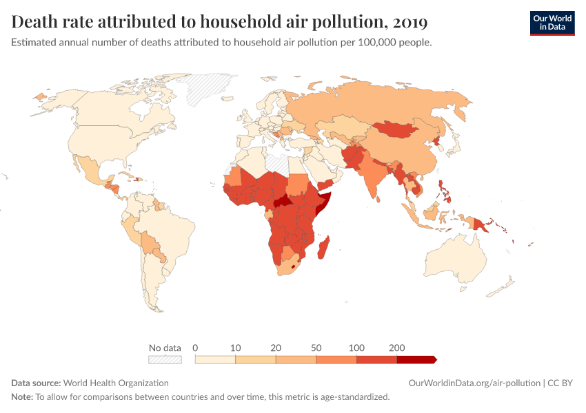 World Health Organization – processed by Our World in Data. “Death rate attributed to household air pollution” [dataset]. World Health Organization, “Global Health Observatory (GHO), World Health Organisation (WHO)” [original data]. Retrieved March 4, 2026 from https://refactor-hide-legend.owid.pages.dev/grapher/death-rate-household-air-pollution