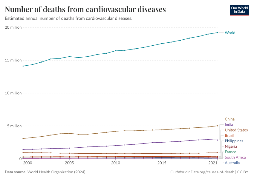 World Health Organization (2024) – with major processing by Our World in Data. “Number of deaths from cardiovascular diseases” [dataset]. World Health Organization, “Global Health Estimates” [original data]. Retrieved March 4, 2026 from https://refactor-hide-legend.owid.pages.dev/grapher/deaths-from-cardiovascular-disease-ghe