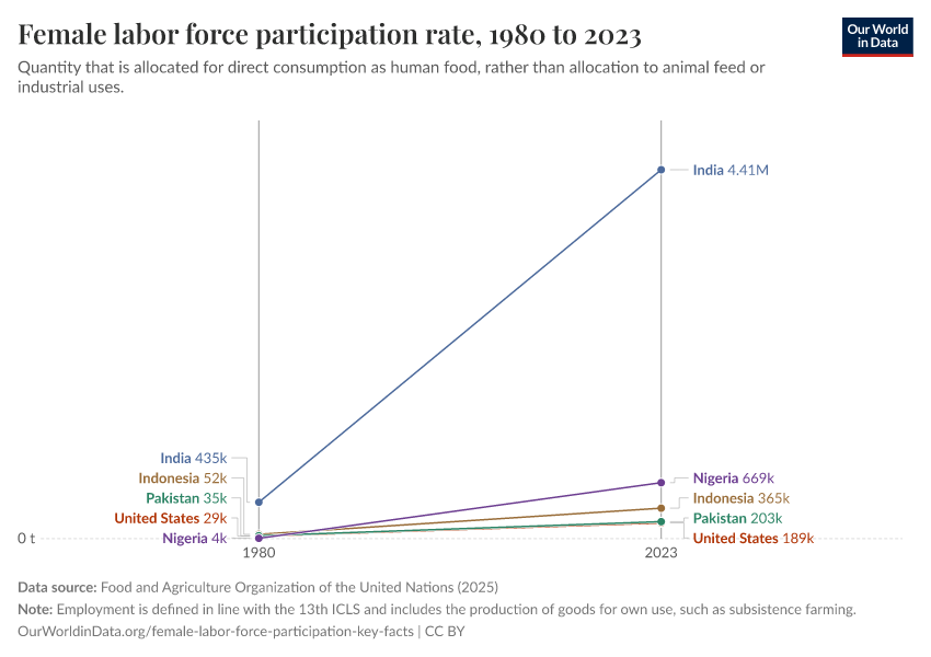 “Data Page: Female labor force participation rate”. Our World in Data (2026). Data adapted from Labour Force Statistics, via World Bank. Retrieved from https://refactor-hide-legend.owid.pages.dev/grapher/female-labor-force-participation-rates-slopes [online resource]How to cite this data