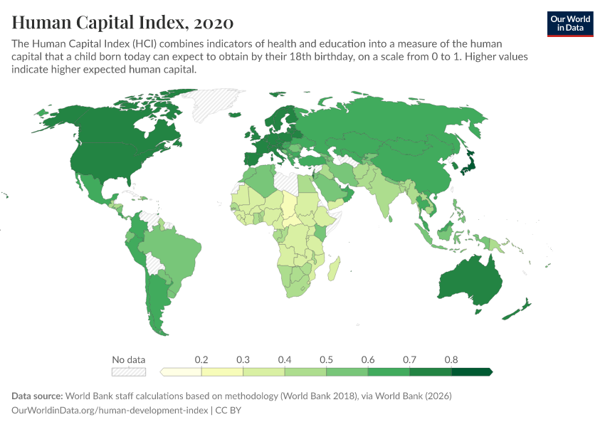 “Data Page: Human Capital Index”. Our World in Data (2026). Data adapted from World Bank staff calculations based on methodology (World Bank 2018), via World Bank. Retrieved from https://refactor-hide-legend.owid.pages.dev/grapher/human-capital-index-in-2018 [online resource]How to cite this data