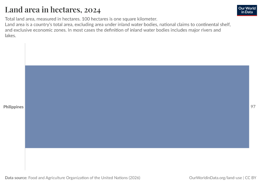 Food and Agriculture Organization of the United Nations (2024) – with major processing by Our World in Data. “Land area in hectares – UN FAO” [dataset]. Food and Agriculture Organization of the United Nations, “Land, Inputs and Sustainability: Land Use” [original data]. Retrieved March 4, 2026 from https://refactor-hide-legend.owid.pages.dev/grapher/land-area-hectares