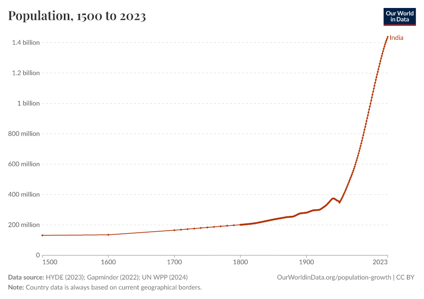 “Data Page: Population”, part of the following publication: Hannah Ritchie, Lucas Rodés-Guirao, Edouard Mathieu, Marcel Gerber, Esteban Ortiz-Ospina, Joe Hasell, and Max Roser (2023) - “Population Growth”. Data adapted from PBL Netherlands Environmental Assessment Agency, Gapminder, United Nations. Retrieved from https://refactor-hide-legend.owid.pages.dev/grapher/population [online resource]