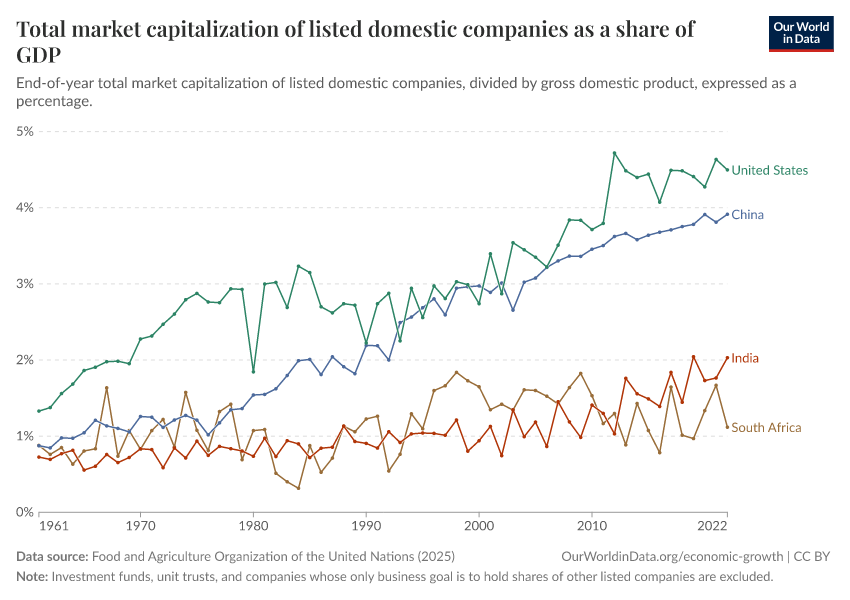 “Data Page: Total market capitalization of listed domestic companies as a share of GDP”. Our World in Data (2026). Data adapted from World Federation of Exchanges (WFE), via World Bank. Retrieved from https://refactor-hide-legend.owid.pages.dev/grapher/total-market-capitalization-listed-domestic-companies-share-gdp [online resource]How to cite this data