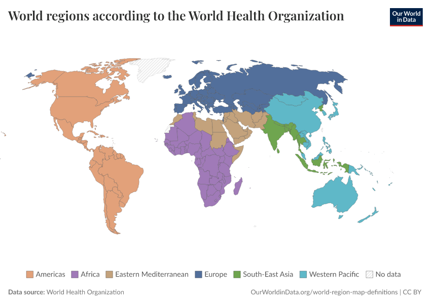 “Data Page: World regions according to the World Health Organization”. Our World in Data (2026). Data adapted from World Health Organization. Retrieved from https://refactor-hide-legend.owid.pages.dev/grapher/who-regions [online resource]How to cite this data
