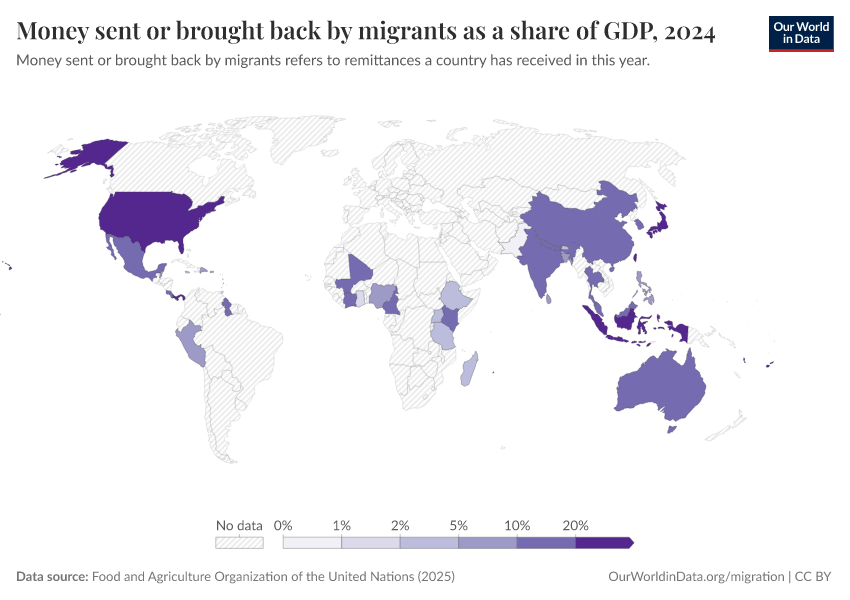 Simon van Teutem and Tuna Acisu (2025) - “The great global redistributor we never hear about: money sent or brought back by migrants” Published online at OurWorldinData.org. Retrieved from: 'https://refactor-hide-legend.owid.pages.dev/great-global-redistributor-money-sent-brought-back-migrants-remittances' [Online Resource]BibTeX citation