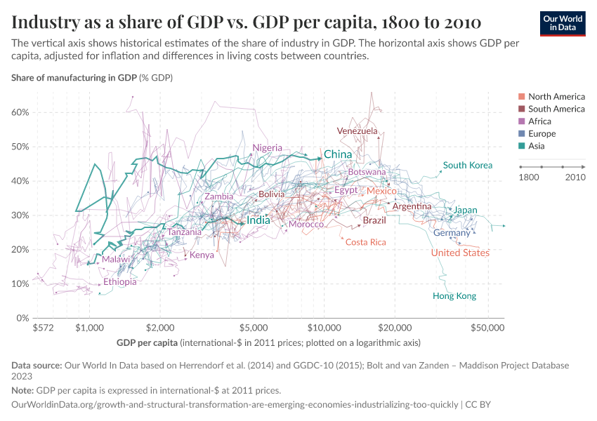 Esteban Ortiz-Ospina and Nicolas Lippolis (2017) - “Are emerging economies deindustrializing too quickly?” Published online at OurWorldinData.org. Retrieved from: 'https://refactor-hide-legend.owid.pages.dev/growth-and-structural-transformation-are-emerging-economies-industrializing-too-quickly' [Online Resource]BibTeX citation