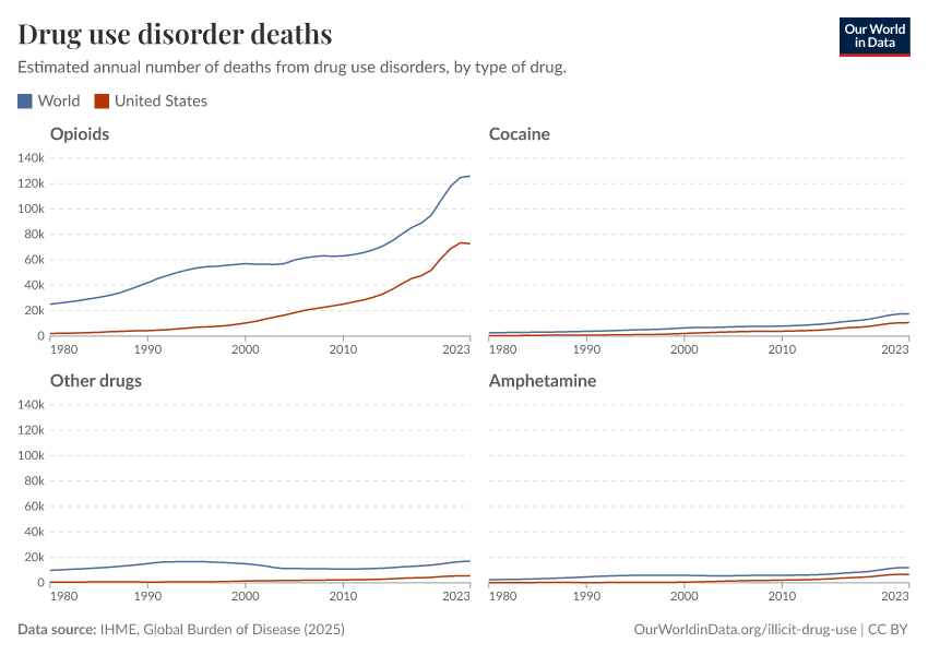 Hannah Ritchie, Pablo Arriagada, and Max Roser (2022) - “Opioids, Cocaine, Cannabis, and Other Illicit Drugs” Published online at OurWorldinData.org. Retrieved from: 'https://refactor-hide-legend.owid.pages.dev/illicit-drug-use' [Online Resource]BibTeX citation
