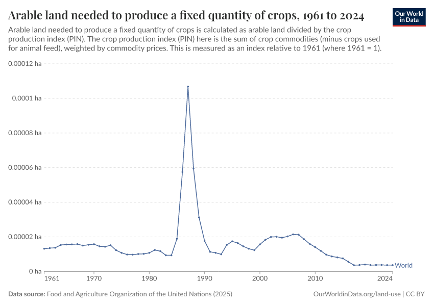 Arable land needed per unit of crop production