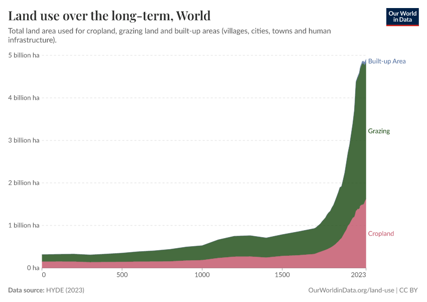 Hannah Ritchie and Max Roser (2019) - “Land Use” Published online at OurWorldinData.org. Retrieved from: 'https://refactor-hide-legend.owid.pages.dev/land-use' [Online Resource]BibTeX citation