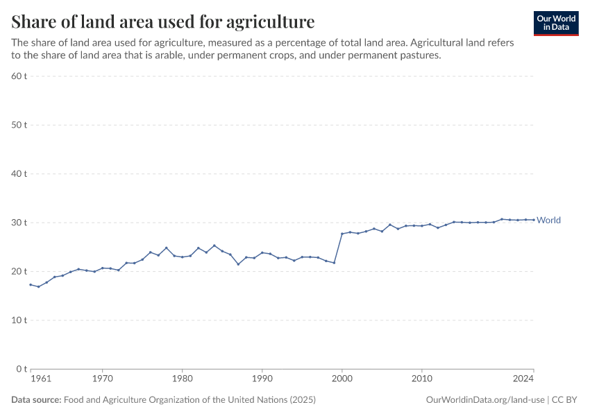 - Half of the world’s habitable land is used for agriculture