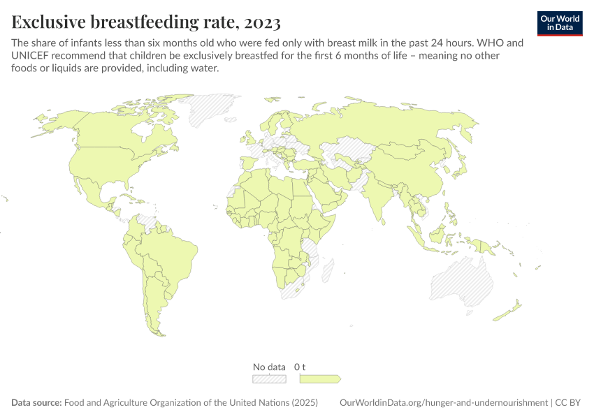 As the map shows, the number of infants who are exclusively breastfed is still low in many countries.40