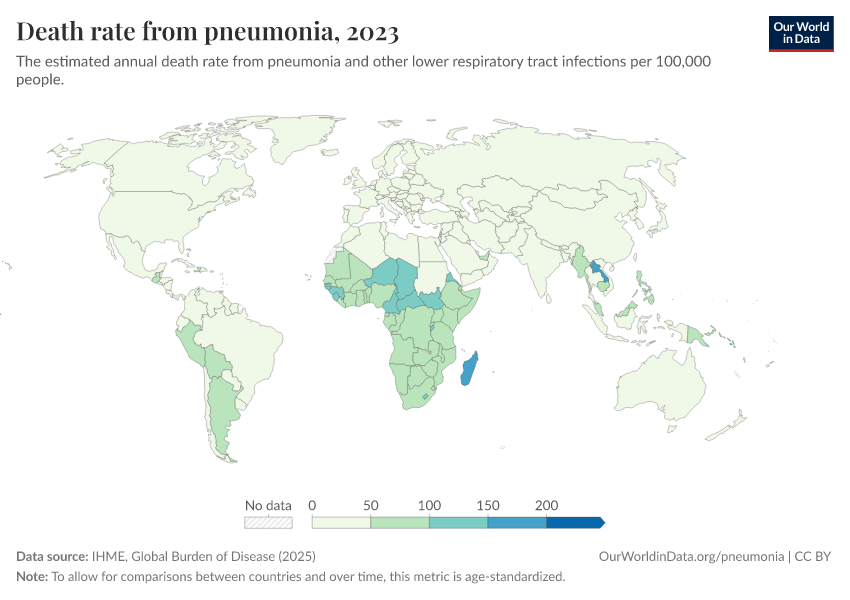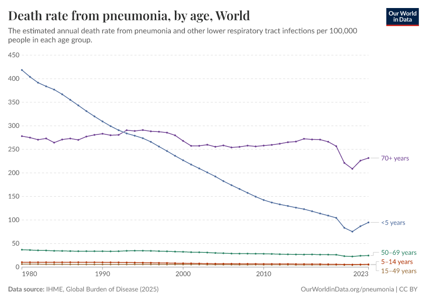Bernadeta Dadonaite and Max Roser (2019) - “Pneumonia” Published online at OurWorldinData.org. Retrieved from: 'https://refactor-hide-legend.owid.pages.dev/pneumonia' [Online Resource]BibTeX citation