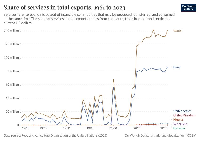 In other countries, such as Nigeria and Venezuela, services account for a small share of total exports.