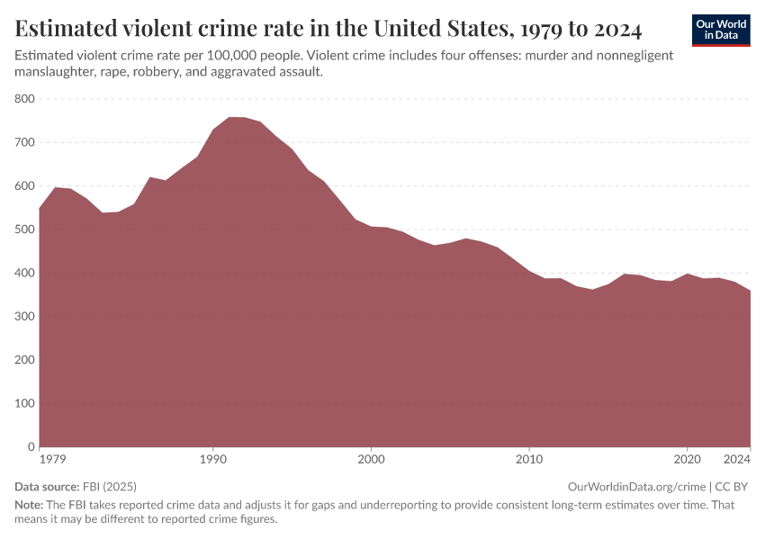 Hannah Ritchie and Fiona Spooner (2026) - “How have crime rates in the United States changed over the last 50 years?” Published online at OurWorldinData.org. Retrieved from: 'https://refactor-hide-legend.owid.pages.dev/us-crime-rates' [Online Resource]BibTeX citation
